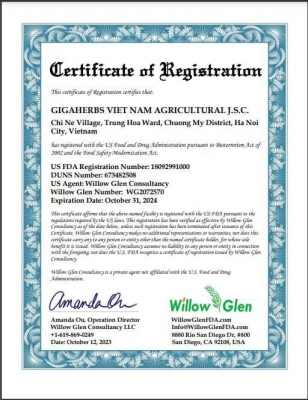 Đơn vị sản xuất: Công Ty cổ phần Nông Nghiệp GiGa Herbs VIỆT NAM