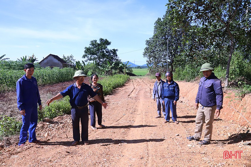 Giữa cái nắng chói chang đầu tháng 8, ông Trần Thế Cương (SN 1975, trú tại thôn Khe Thờ, xã Đồng Lộc) cùng những người hàng xóm vẫn miệt mài hoàn thiện từng công đoạn của con đường vừa mới được khởi công chưa lâu.