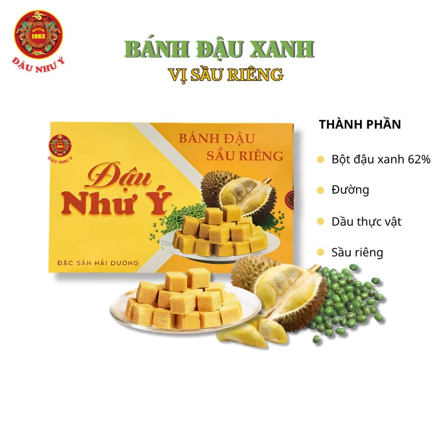 Đặt ngay Bánh Đậu Sầu Riêng Đậu Như Ý Hộp 280g để thưởng thức hương vị sầu riêng béo thơm hòa quyện cùng bánh đậu xanh truyền thống trong từng miếng bánh.