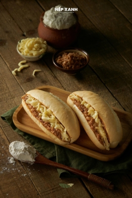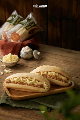 Thịt xá xíu mềm ngọt, được ướp theo công thức riêng, kết hợp cùng lớp phô mai béo nhẹ.