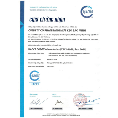- Bánh Pía Bảo Minh được sản xuất trên dây chuyền khép kín, thiết bị máy móc hiện đại, áp dụng quy trình quản lý chất lượng ISO 22000:2018. Đặc biệt, Bảo Minh áp dụng công nghệ cao vào sản xuất, đóng gói và bảo quản nên kéo dài thời gian sử dụng bánh được lâu hơn.