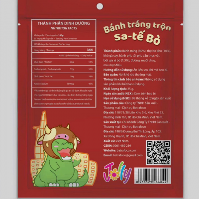 Liên hệ đặt hàng ngay Bánh Tráng Trộn Sa Tế Bò Jolly 25g – cay đậm, thơm ngon, dễ bán!