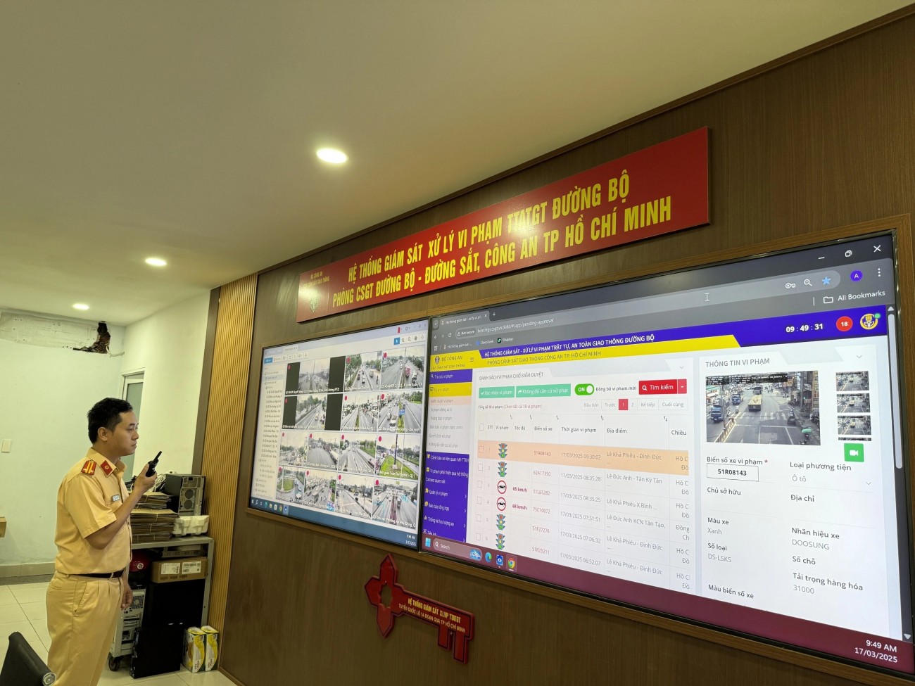 Tuy nhiên, theo ghi nhận của PV Thanh Niên, hiện nay, tại TP.HCM, việc cập nhật lỗi vi phạm lên hệ thống diễn ra khá nhanh. Đầu tiên, CSGT trích xuất dữ liệu phạt nguội từ camera giám sát xử lý vi phạm qua hình ảnh hoặc do CSGT trực tiếp quay hình, chép dữ liệu vào máy tính, xác định hành vi vi phạm, thông tin phương tiện vi phạm và bấm in thông báo vi phạm.