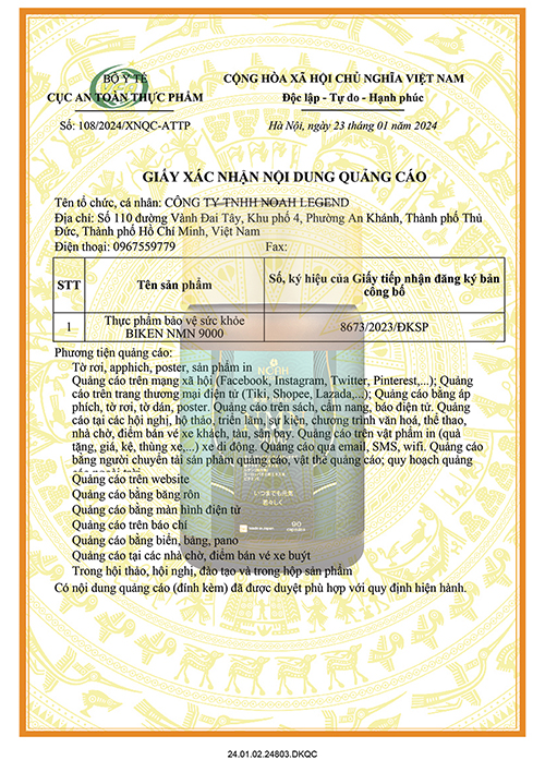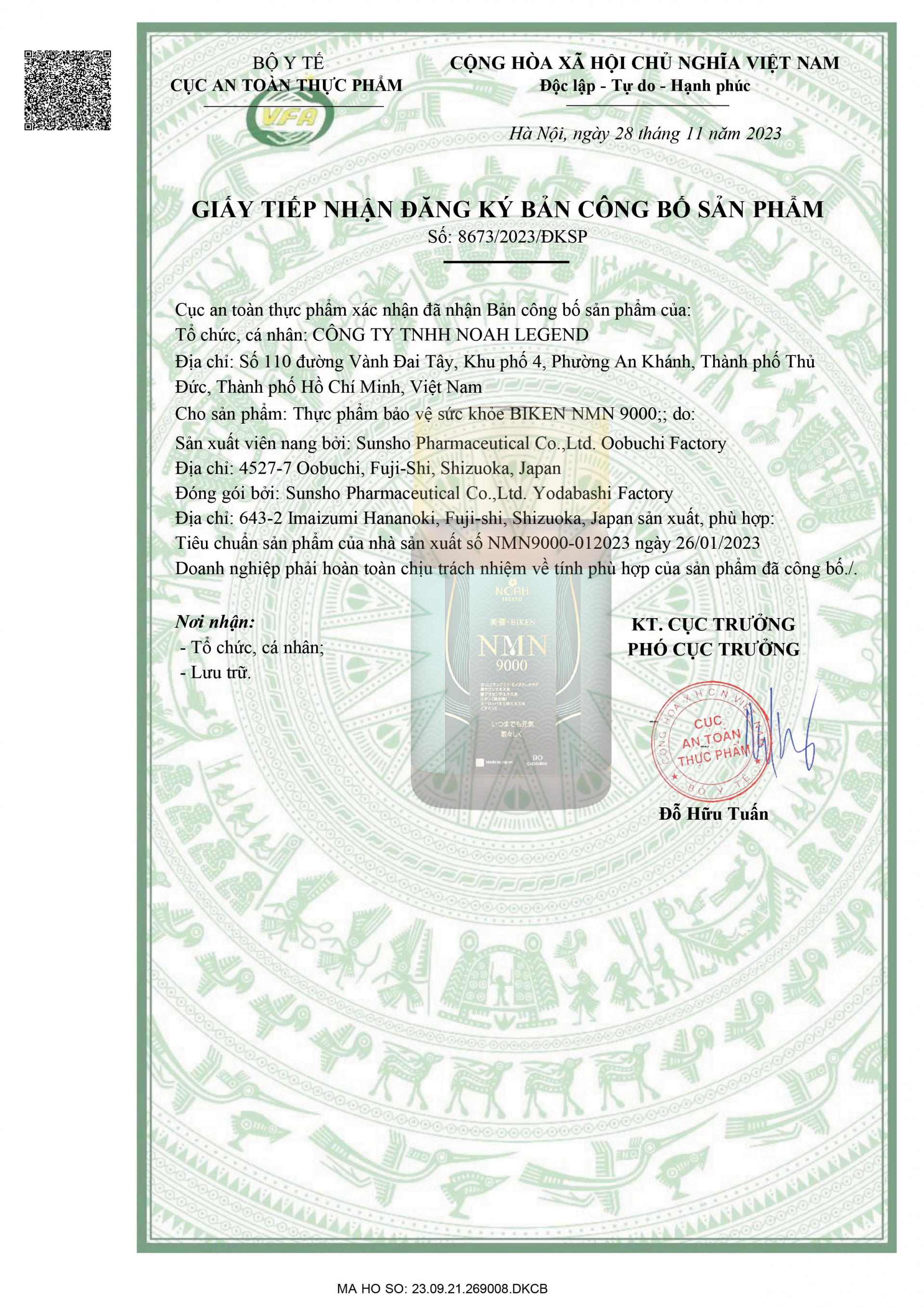1. Tên sản phẩm: Thực phẩm bảo vệ sức khỏe BIKEN NMN 9000