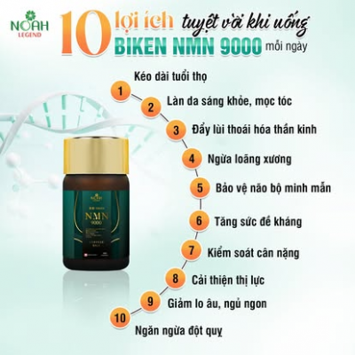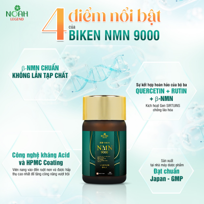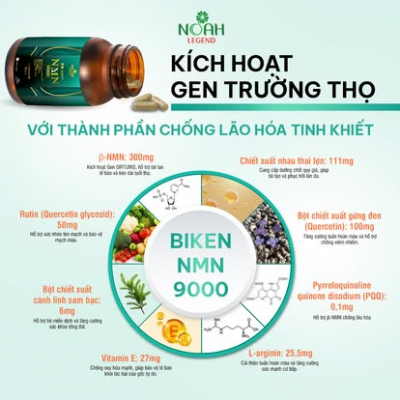Đánh thức thanh xuân, tăng cường sức khỏe với viên uống BIKEN NMN 9000 Nhật Bản. Công thức chứa Beta-NMN tinh khiết giúp hỗ trợ hạn chế lão hóa da từ cấp độ tế bào, phục hồi năng lượng. Kết hợp độc đáo chiết xuất nhau thai heo, gừng đen, Rutin, PQQ và Vitamin E giúp nuôi dưỡng làn da tươi trẻ, tăng cường sinh lực. Lựa chọn cao cấp giúp bạn duy trì sự trẻ trung, dẻo dai và nâng cao chất lượng cuộc sống mỗi ngày.