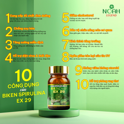 1. Tên sản phẩm: Thực phẩm bảo vệ sức khỏe BIKEN SPIRULINA EX 29