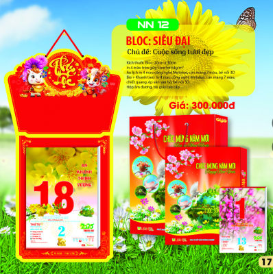 Bộ lịch NN12 với chủ đề Cuộc sống tươi đẹp mang đến không khí Tết vui tươi, đầy sắc màu và ý nghĩa. Với Bloc Siêu Đại, bộ lịch này giúp tô điểm không gian sống của bạn, đồng thời mang đến những điều tốt đẹp, thịnh vượng cho gia đình, bạn bè và đối tác.