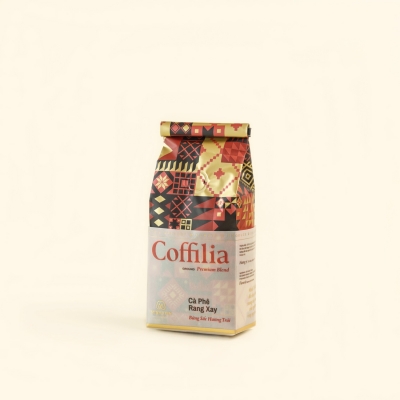 "Cà phê rang xay Coffilia - Bừng sắc hương trái- hoà quyện giữa hương vị Arabica và Robusta với công thức đặc biệt, rang mộc bởi nghệ nhân 20 năm kinh nghiệm, 100% cà phê nguyên chất không thêm bất cứ phụ gia nào khác.