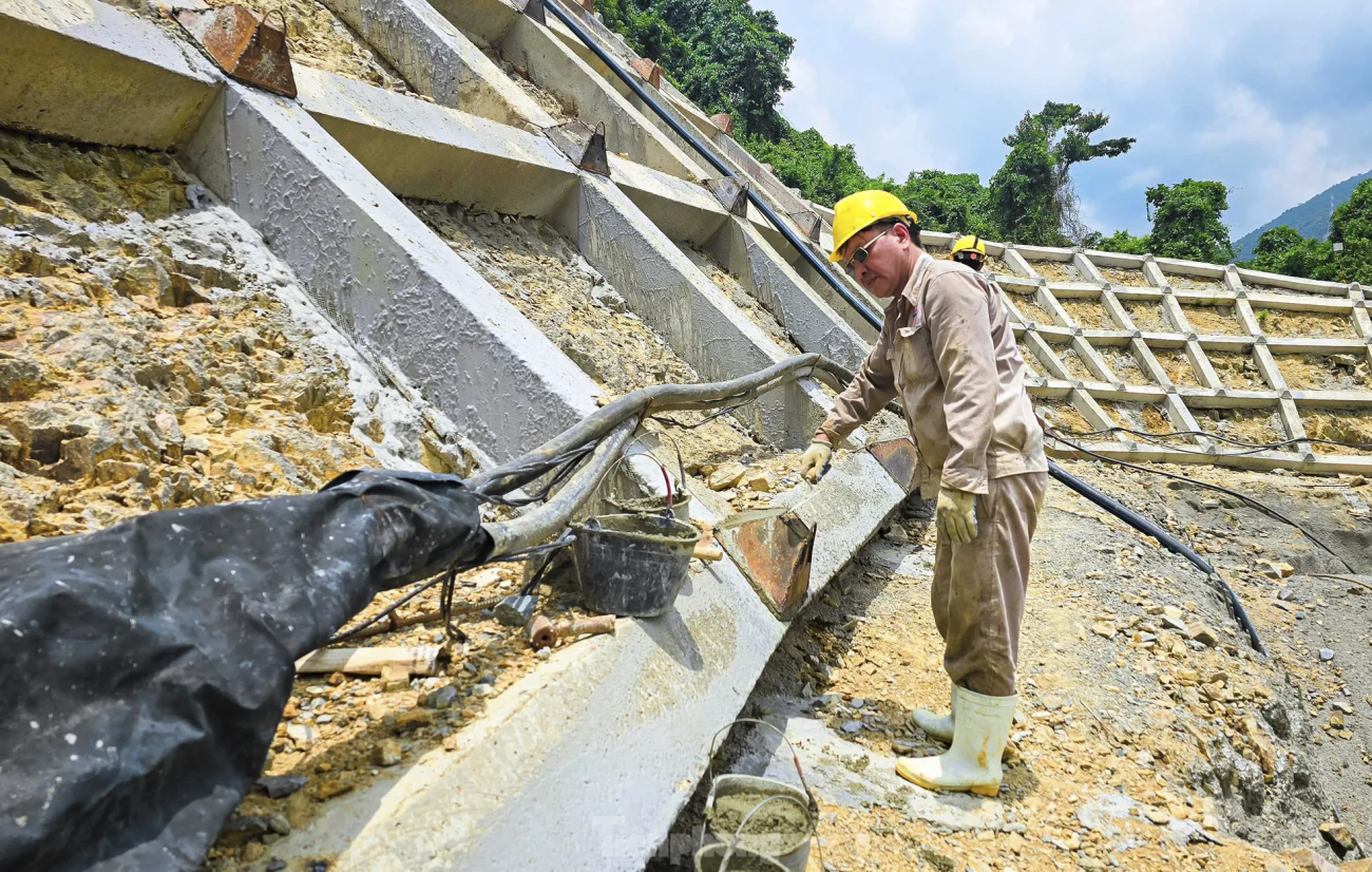 Ngoài thi công hầm xuyên núi, đường dẫn vào hầm cũng được đơn vị thực hiện dự án triển khai thi công đồng bộ.