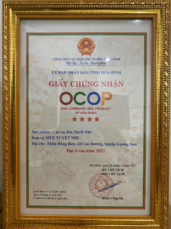 Trên nền tảng đó, Cao Xạ Đen Tuyết Nhi được nghiên cứu và phát triển từ thân, lá cây xạ đen bản địa. Sản phẩm được chế biến dưới dạng cao cô đặc, giúp người dùng sử dụng thuận tiện, không cần đun sắc như phương pháp truyền thống. Việc đạt chứng nhận OCOP 4 sao cho thấy sản phẩm đã đáp ứng đầy đủ các tiêu chí về chất lượng, nguồn gốc nguyên liệu, quy trình sản xuất, an toàn thực phẩm và khả năng thương mại hóa.