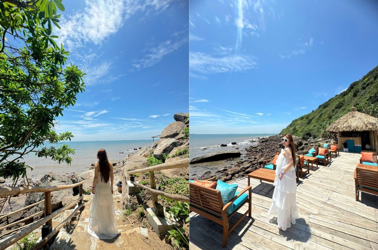 Đi bộ dọc theo cây cầu, du khách thấy có nhiều điểm ngắm cảnh biển ở bãi Đông ấn tượng và check-in đẹp mắt. Dọc theo cây cầu còn có những quầy bán đồ uống được xây dựng từ gỗ, tre, lợp mái lá.