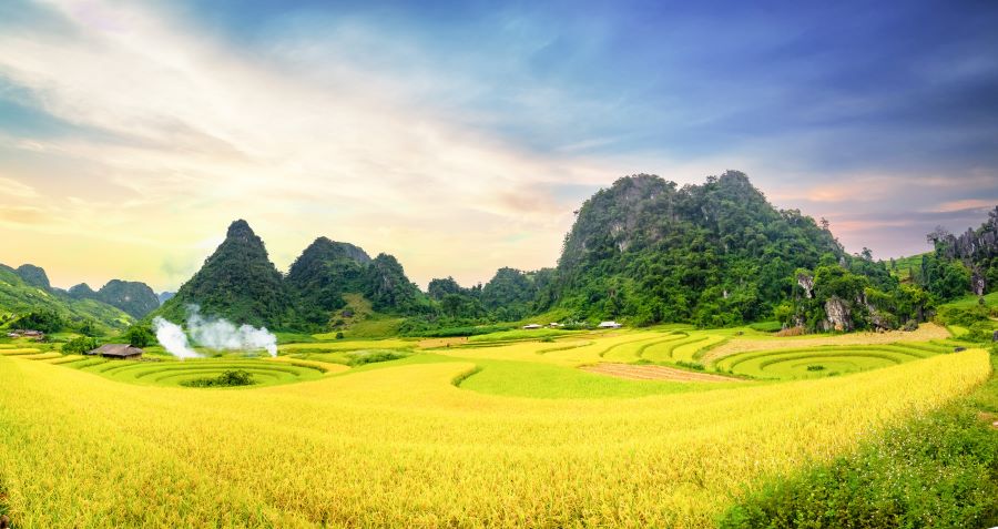 Với nhiều tín đồ du lịch, mùa lúa chín là thời điểm đẹp nhất trong năm để "xách ba lô lên và đi". Và huyện Tủa Chùa, tỉnh Điện Biên là một địa chỉ tin cậy sẽ mang đến cho bạn một trải nghiệm thú vị với những bức ảnh tuyệt vời. Đến Tủa Chùa vào dịp tháng 4, tháng 5 là mùa nước đổ hoặc tháng 9, tháng 10 là mùa lúa chín, du khách có thể thấy trên những triền núi thoải dài, những thửa ruộng bậc thang xếp tầng dẫn dụ ánh nhìn vào một mê cung vàng đầy cám dỗ, mê hoặc. Xen giữa những sắc vàng là nếp nhà sàn bình yên, là những con đường nhỏ quanh co tạc vào thung lũng như những dải lụa mềm vắt ngang. Phóng xa tầm mắt, tất cả cảnh vật trên những thửa ruộng bậc thang vào mùa lúa chín hòa quyện với nhau như đang mời gọi du khách đến trải nghiệm, khám phá.