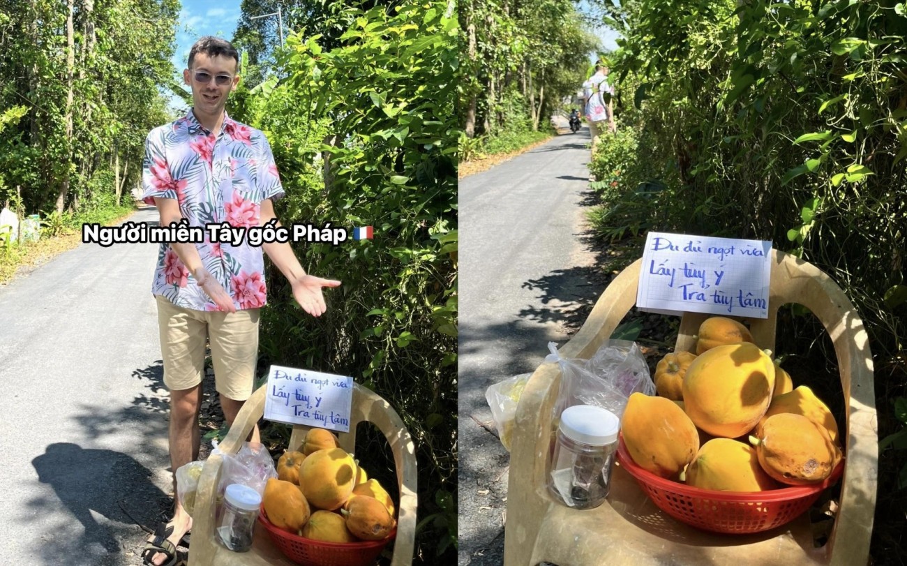 Mới đây, hình ảnh một anh Tây bán đu đủ "lấy tùy ý, trả tùy tâm" ở Đồng Tháp được cư dân mạng tặng 'mưa tim' vì quá dễ thương.