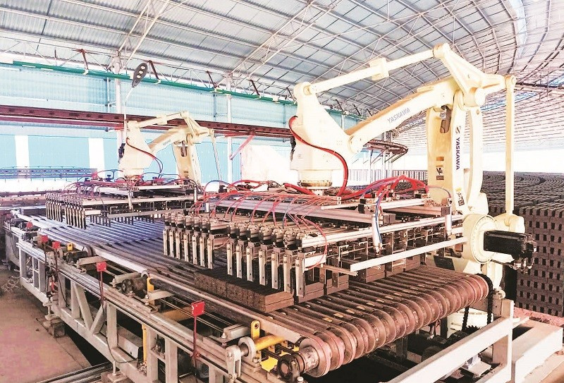 Ông Nguyễn Phương Nam, Chủ tịch Hội đồng quản trị Công ty cổ phần gạch Tuynel Viên Châu cho biết: Đơn vị đang sử dụng công nghệ sản xuất gạch tuynel lò đĩa, rô-bốt sắp xếp gạch, toàn bộ quy trình sản xuất tự động hóa 100%. Quy trình hút ẩm, sấy, nung và làm nguội khép kín hoạt động liên tục, hệ thống xử lý khí thải hiện đại, hạn chế đến mức thấp nhất lượng khí thải. Việc ứng dụng công nghệ cao và các nền tảng số, cùng với dây chuyền hiện đại giúp đơn vị tăng 250% sản lượng sản xuất, tăng 200% công suất bốc xếp gạch, giảm 80% số sản phẩm bị đổ vỡ, hư hại so với sử dụng nhân công truyền thống và giúp giảm ô nhiễm, thân thiện với môi trường.