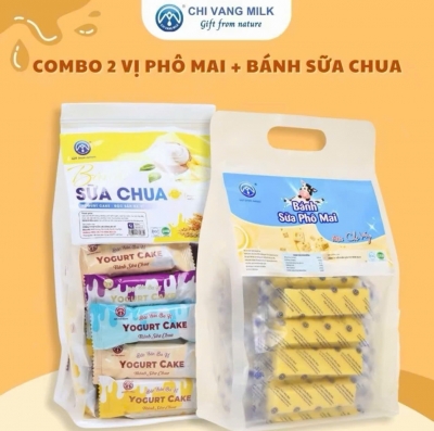Combo 2 Túi Bánh Sữa Chua + Phô Mai Chị Vàng Milk 500g là sự kết hợp hài hòa giữa hai hương vị hấp dẫn. Bánh sữa chua thơm béo, chua thanh mát từ sữa bò tươi và men tự nhiên; bánh sữa phô mai mềm mịn, tan chảy với vị béo ngậy và mặn nhẹ đặc trưng. Bánh dễ ăn, tiện lợi, phù hợp làm món ăn nhẹ hằng ngày cho cả gia đình.