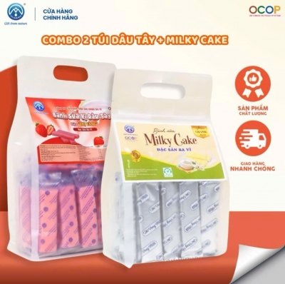 Combo 2 Túi Bánh Sữa Dâu Tây + Milky Cake Chị Vàng Milk 500g - Mềm Mịn Thơm Béo - Đặc Sản Ba Vì Cho Cả Gia Đình