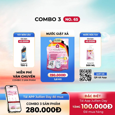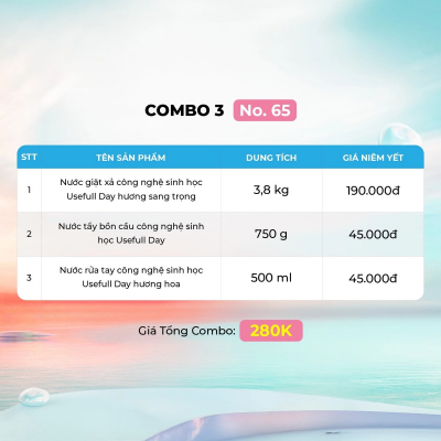 Combo 3 No65 Nước giặt xả 3,8kg, nước rửa tay và nước tẩy bồn cầu Usefull Day