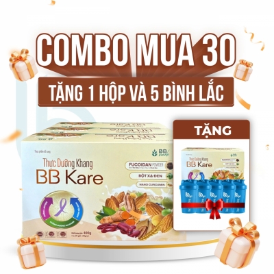 Combo đặc biệt dành cho khách hàng và đối tác yêu thích Thực Dưỡng Khang BB Kare – dòng dinh dưỡng thuần chay giúp phục hồi thể trạng – tăng sức đề kháng – hỗ trợ chăm sóc sức khỏe tổng thể. Mua 30 hộp BB Kare, tặng ngay 1 hộp BB Kare + 5 bình lắc BB GO cao cấp Ưu đãi lớn – quà tặng cực chất – tiếp sức hành trình khỏe mạnh mỗi ngày!
