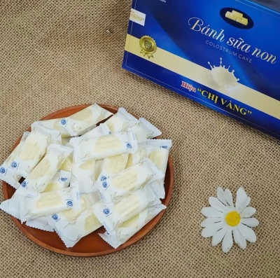 Bánh Sữa Non Colostrum Cake Chị Vàng Milk Hộp 110g là sản phẩm được làm từ sữa non và sữa tươi – nguồn dinh dưỡng quý giá, kết hợp cùng các nguyên liệu chọn lọc khác, mang đến hương vị thơm ngon và giá trị dinh dưỡng cao.Bánh sở hữu vị ngọt thanh tự nhiên của sữa, hòa quyện cùng độ béo ngậy nhẹ của bơ, tạo nên hương vị đậm đà, dễ ăn và khó cưỡng. Kết cấu bánh mềm mịn - tan nhẹ trong miệng, phù hợp cho cả trẻ em và người lớn. Sản phẩm được đóng gói hộp 110g nhỏ gọn, tiện lợi cho việc sử dụng hàng ngày, làm bữa ăn phụ hoặc bổ sung dinh dưỡng.