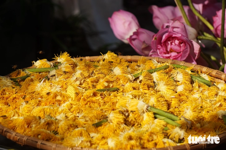Còn lại tua sen cũng được lấy riêng sử dụng vào nhiều mục đích. Có nhà sấy tua sen để uống như trà an thần, dưỡng sinh. Có nhà dùng tươi, xay nhuyễn làm sinh tố rất ngon.