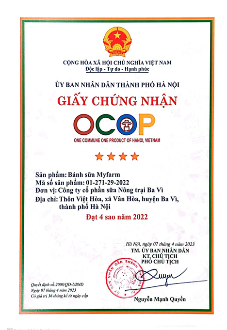 4. Chứng nhận OCOP 4 sao do UBND TP Hà Nội cấp