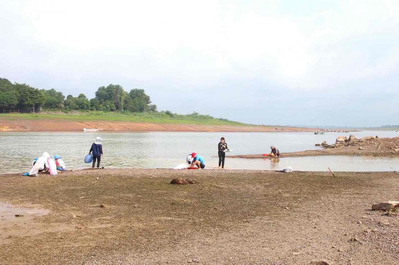 Cuối tuần ghé hồ Trị An bắt cá mùa nước cạn