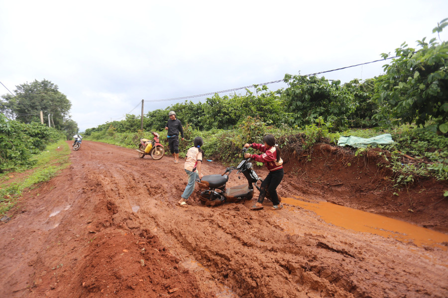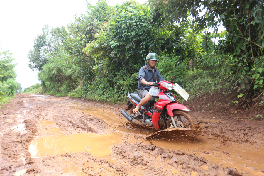 Nhiều năm qua, mỗi khi vào mùa mưa, đoạn đường này lại trở nên lầy lội, gây khó khăn cho việc đi lại của người dân trong khu vực. Với đặc thù đất đỏ bazan, khi có nhiều phương tiện từ xe máy, công nông, ô tô chở hàng hóa… qua lại, mặt đường đã bị cày xới, tạo nên nhiều hố bùn sâu 20-50 cm.
