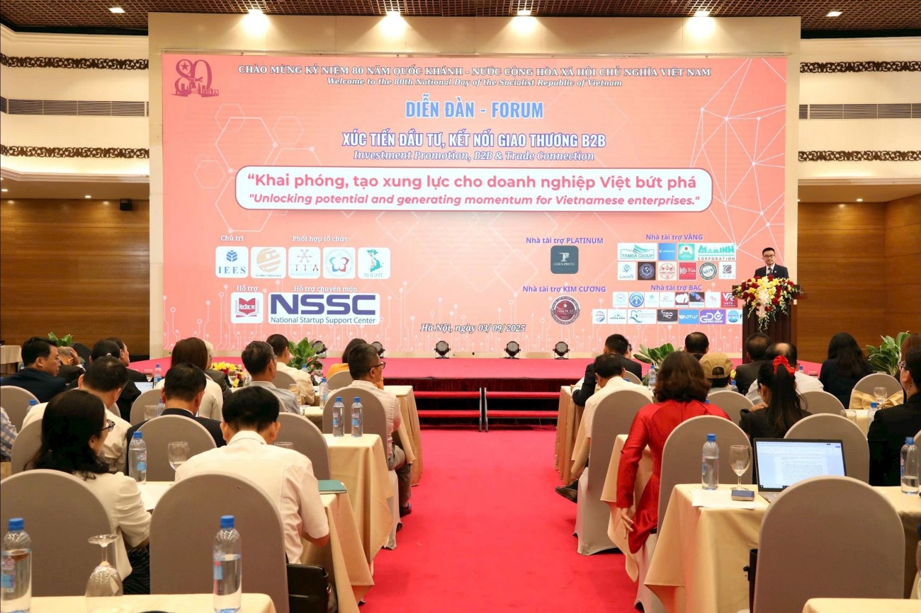Sáng 3/9, Viện Khoa học Giáo dục và Môi trường (IEES), Trung tâm Hỗ trợ Khởi nghiệp Sáng tạo Quốc gia (Bộ Khoa học và Công nghệ), Nền tảng số Quốc gia VIVINA cùng các bên liên quan, các đơn vị tài trợ đã tổ chức Diễn đàn - Forum xúc tiến đầu tư, kết nối giao thương B2B 2025 với sự tham dự của gần 500 đại biểu là lãnh đạo các bộ, ngành Trung ương, địa phương, hiệp hội doanh nghiệp và cộng đồng doanh nghiệp đến từ 34 tỉnh, thành phố trên cả nước.
