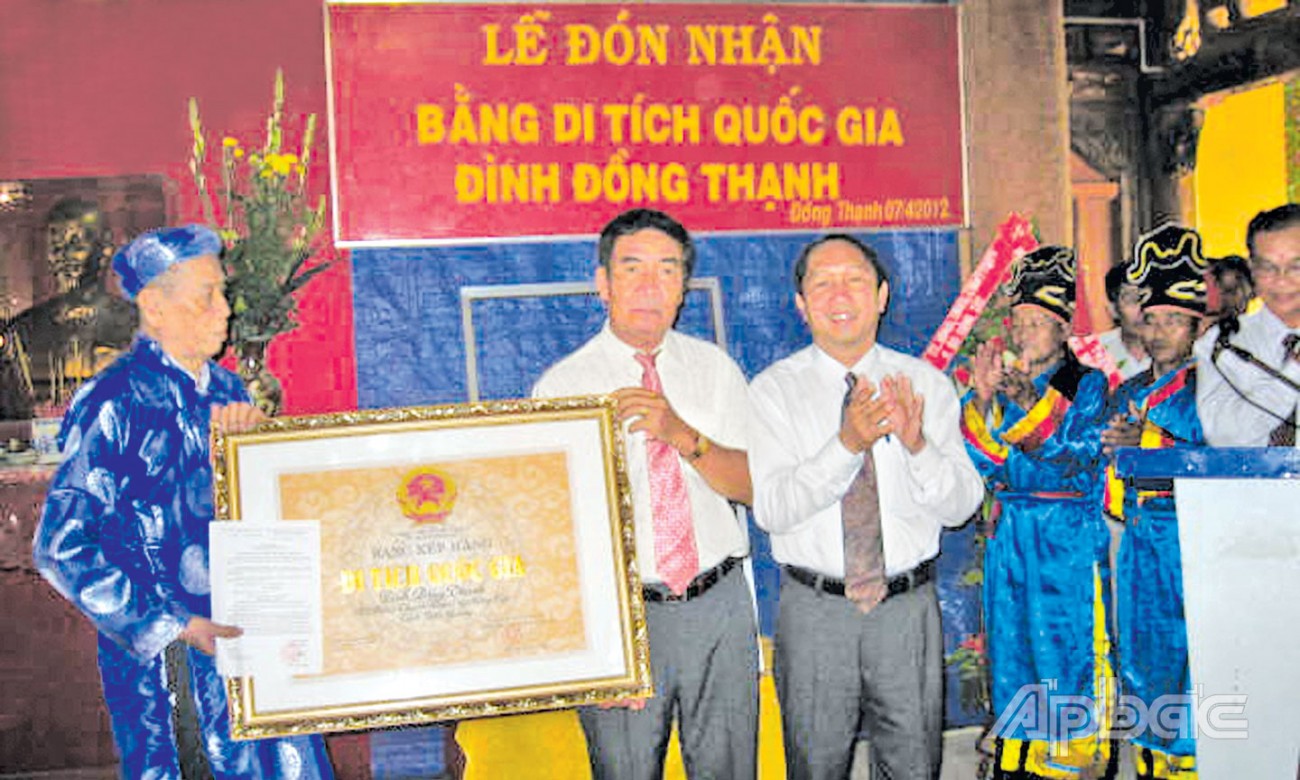 Năm 2012, UBND xã Đồng Thạnh làm Lễ đón nhận Bằng di tích kiến trúc nghệ thuật cấp quốc gia đình Đồng Thạnh.
