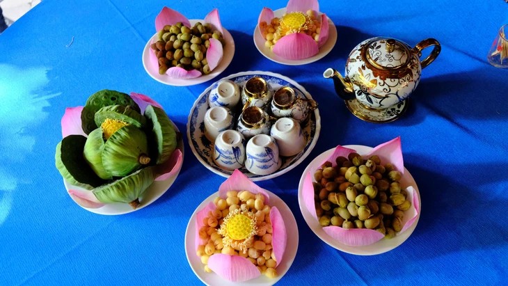 Giữa đồng sen, du khách ngồi thưởng thức sữa sen trong những căn chòi lá, vừa ngắm những bông hoa sen đưa nhẹ trong gió, thoang thoảng mùi sen với bởi bầu không khí trong lành, mát mẻ và bình yên và thưởng thức những món ăn đặc sản địa phương.