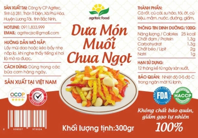 Dưa món muối chua ngọt Bà Mai là một sản phẩm độc đáo, mang đến hương vị tươi ngon và hấp dẫn cho bữa ăn của gia đình bạn. Được sản xuất bởi Công ty CP Agrietc, sản phẩm này sử dụng nguyên liệu tự nhiên và quy trình chế biến an toàn, đảm bảo chất lượng tốt nhất.