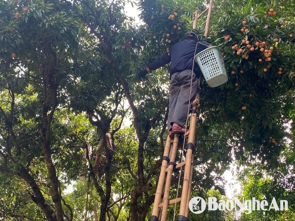Không chỉ giá thấp, việc thu hoạch vải còn đòi hỏi nhiều công sức. Người dân phải leo trèo lên cây cao để hái từng chùm vải, đối mặt với nguy hiểm từ côn trùng như ong vẽ, chưa kể thời tiết nắng nóng.