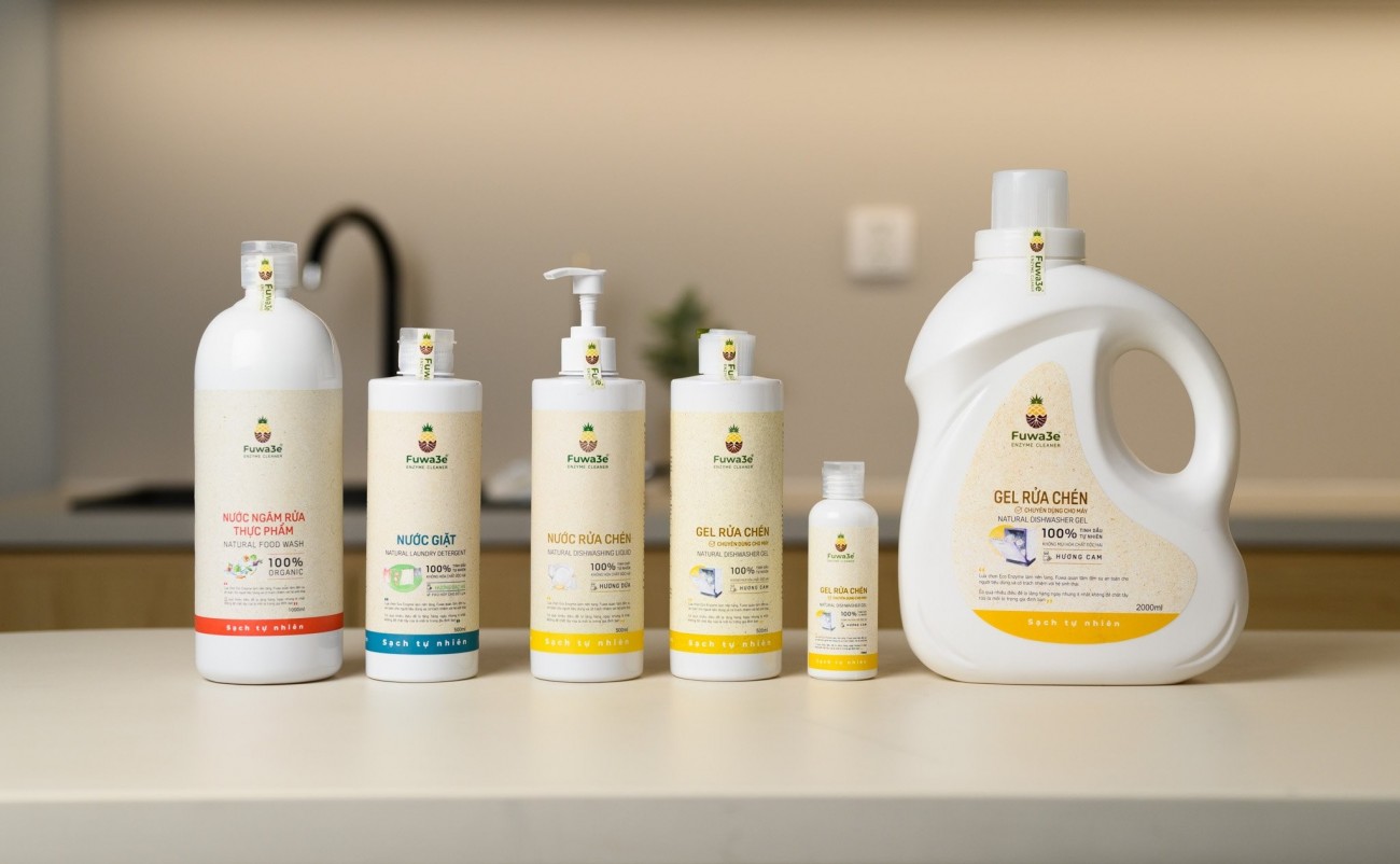Với góc nhìn khác biệt, nhóm sáng lập FUWA3E đã không nhìn thấy “rác thải” - họ nhìn thấy tiềm năng. “Chúng tôi phát hiện trong vỏ dứa có chứa enzyme bromelain - một loại enzyme sinh học có đặc tính kháng khuẩn, phân hủy protein và khử mùi rất mạnh. Tại sao không thử tạo ra một sản phẩm tẩy rửa tự nhiên từ đó?”, đại diện thương hiệu chia sẻ.