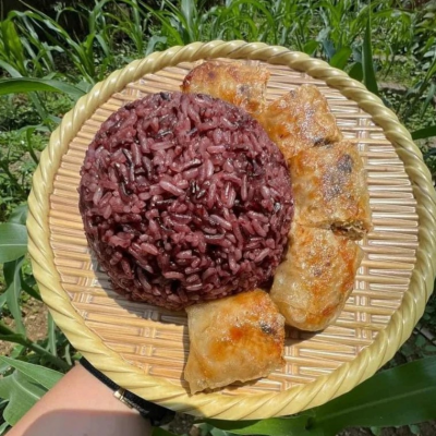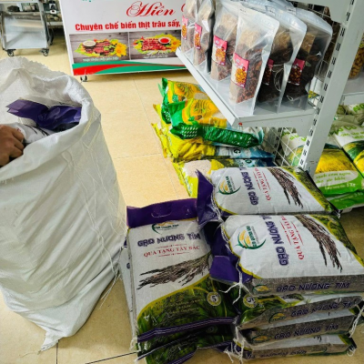 sản phẩm gạo Nương Tím của người Mông trạm tấu trồng trên nương, gạo được sát mộc tự nhiên vẫn giữ nguyên lớp cám gạo, không chất bảo quản.