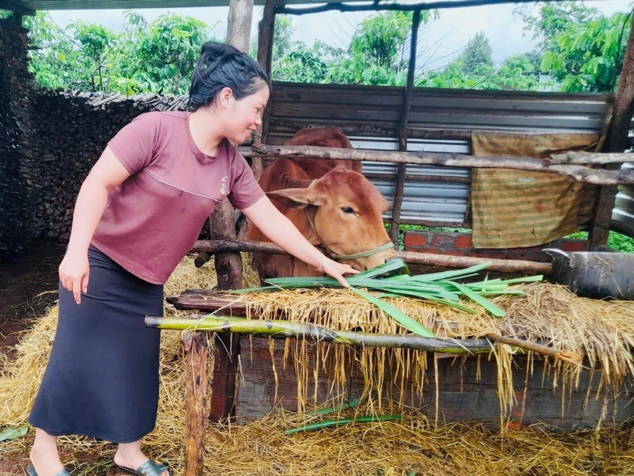 Gia đình chị Tuynh (làng Bông, xã Hà Bầu) không có đất sản xuất nên gặp nhiều khó khăn. Sau khi rà soát, gia đình chị được lựa chọn để hỗ trợ bò sinh sản làm sinh kế. Nhận được thông tin từ cán bộ thôn, chị chủ động xây dựng chuồng, trồng cỏ, chuẩn bị rơm để đảm bảo các điều kiện chăm sóc vật nuôi. “Được hỗ trợ bò sinh sản, gia đình tôi cố gắng chăm sóc để bò phát triển tốt, sinh bê con khỏe mạnh để nhân đàn”, chị Tuynh phấn khởi nói.