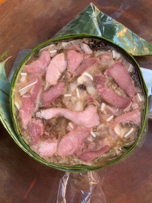 Ở làng nghề Ước Lễ, người ta vẫn chế biến với cách truyền thống dùng lá chuối gói để tạo hương vị đặc trưng có mùi thơm của lá cho từng miếng giò. Lá to bản, rửa sạch, cắt miếng 20cm hơ lửa cho mềm. Lạt giang chẻ mỏng. Sau đó xếp các lớp lá nối tiếp lên nhau trên một mặt phẳng và bắt đầu cho thịt đã xào vào để gói (thịt khi gói phải còn nóng). Khi đó miếng giò khi cắt ra trông đẹp mắt với sự trộn lẫn giữa màu đen của nấm, màu trắng của thịt tai, màu nâu của lưỡi, thịt bắp.