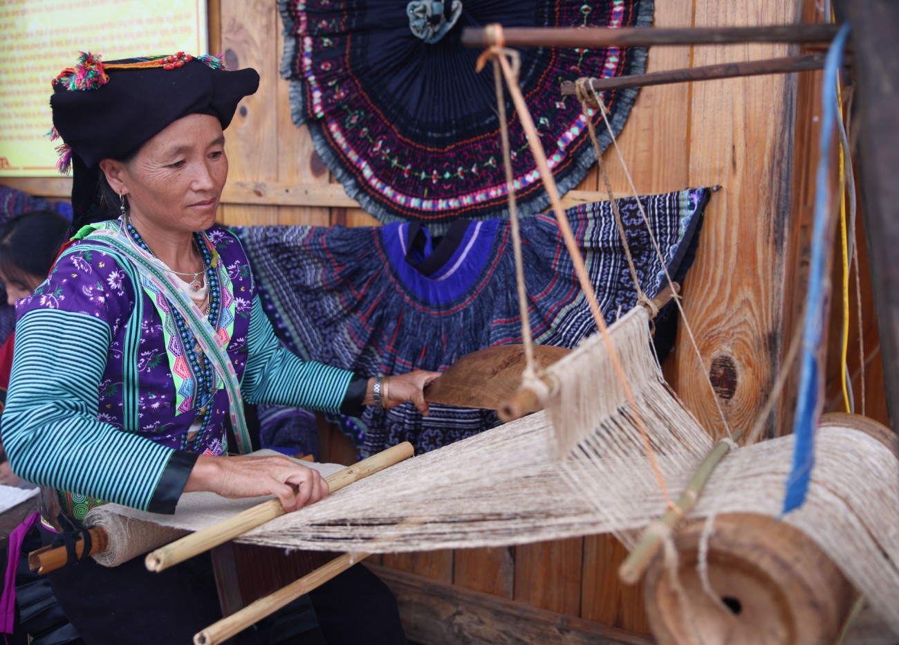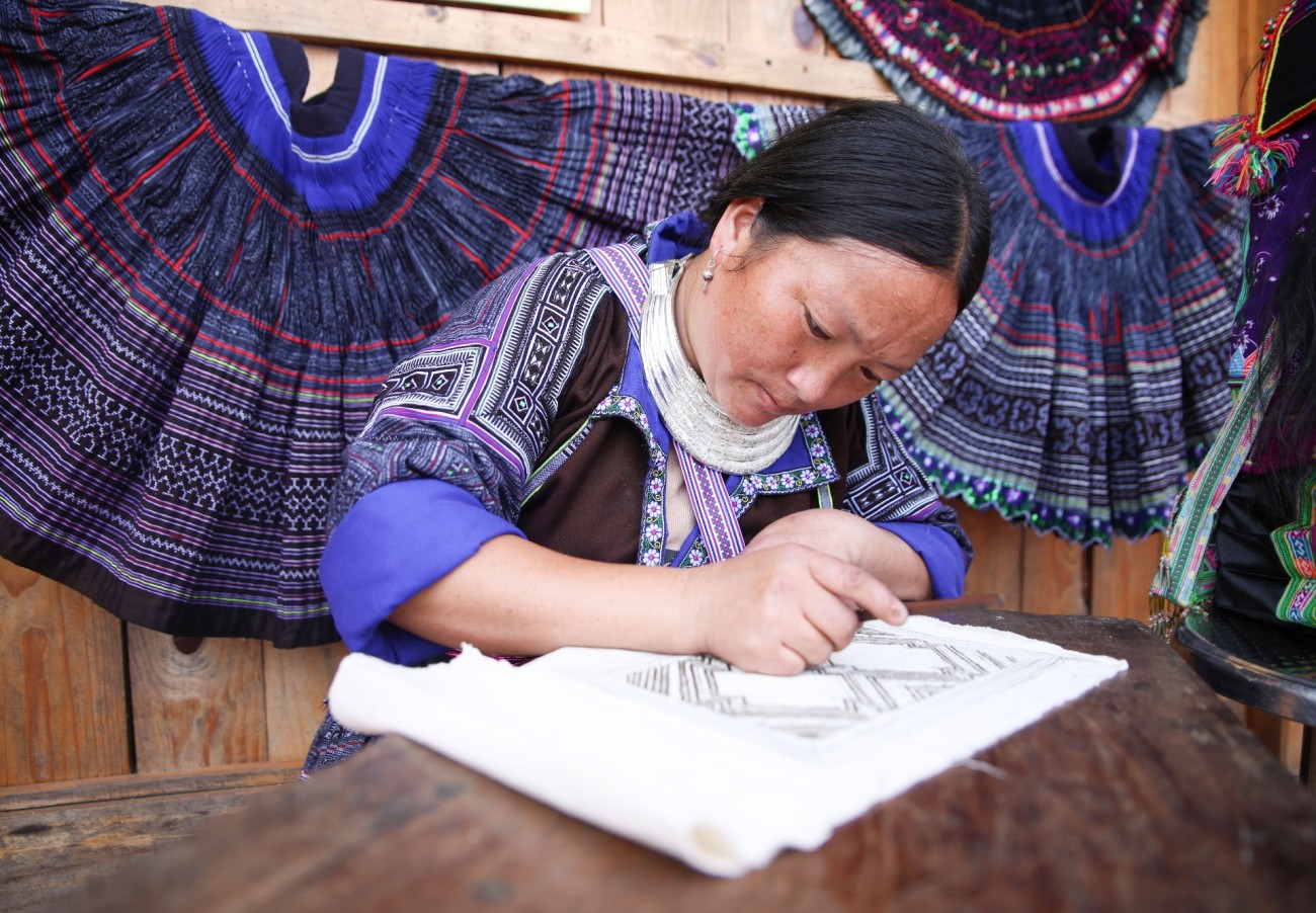 Chị Giàng Thị Nắng ở bản Tu San, xã Tà Mung chia sẻ: Mỗi năm, tôi tranh thủ thời gian để may cho mình một bộ thật đẹp diện Tết, đi chơi hội; làm cả áo cho chồng, cho con nữa. Để làm được một bộ váy áo truyền thống của người dân tộc Mông mất nhiều thời gian lắm, khéo khi cả năm mới xong, vì nhiều công đoạn. Từ dệt vải, vẽ hoa văn bằng sáp ong lên vải rồi nhuộm chàm; sau đó mới thêu tay các hoa văn bằng các sợi chỉ sắc màu. Tuy vất vả, nhưng tôi và chị em trong bản rất vui, bởi đó là nét đẹp văn hoá của dân tộc được các bà, các mẹ truyền dạy lại. 12, 13 tuổi, chúng tôi đã thành thục thêu thùa, may vá.