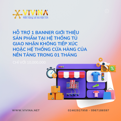 - Hỗ trợ 01 banner giới thiệu sản phẩm tại hệ thống tủ giao nhận không tiếp xúc VIVINABox hoặc cửa hàng VIVINA All in One trong thời gian 1 tháng (**)