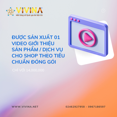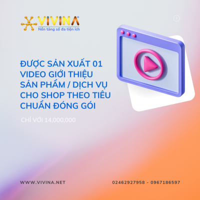 - Được sản xuất 01 video giới thiệu sản phẩm/ dịch vụ cho shop theo tiêu chuẩn đóng gói của VIVINA (Tham khảo video mẫu trước khi triển khai).