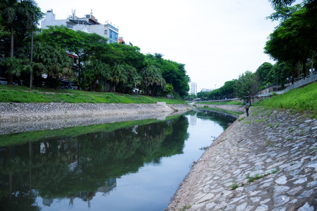 Sáng 23/9, ghi nhận tại khu vực đầu sông Tô Lịch (giao với đường Hoàng Quốc Việt, Hà Nội), nguồn nước từ hồ Tây đã ngừng bổ cập. Tại đoạn ngã tư phố Quan Hoa - Nguyễn Khánh Toàn (phường Cầu Giấy), màu nước sông đã không còn xanh như những ngày trước.