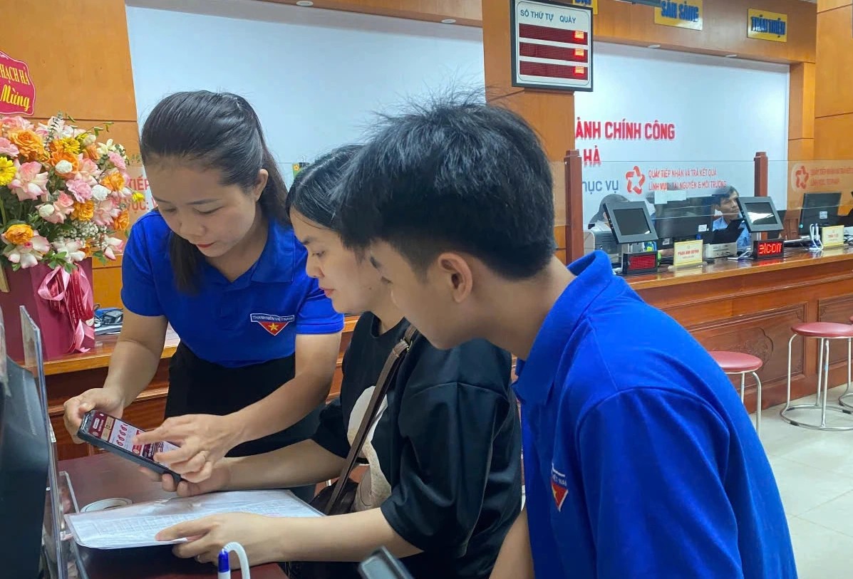 Để hỗ trợ địa phương vận hành chính quyền địa phương 2 cấp, Đoàn thanh niên các xã, phường ở Hà Tĩnh đồng loạt thành lập các đội thanh niên tình nguyện chuyển đổi số, hướng dẫn người dân sử dụng dịch vụ công trực tuyến.