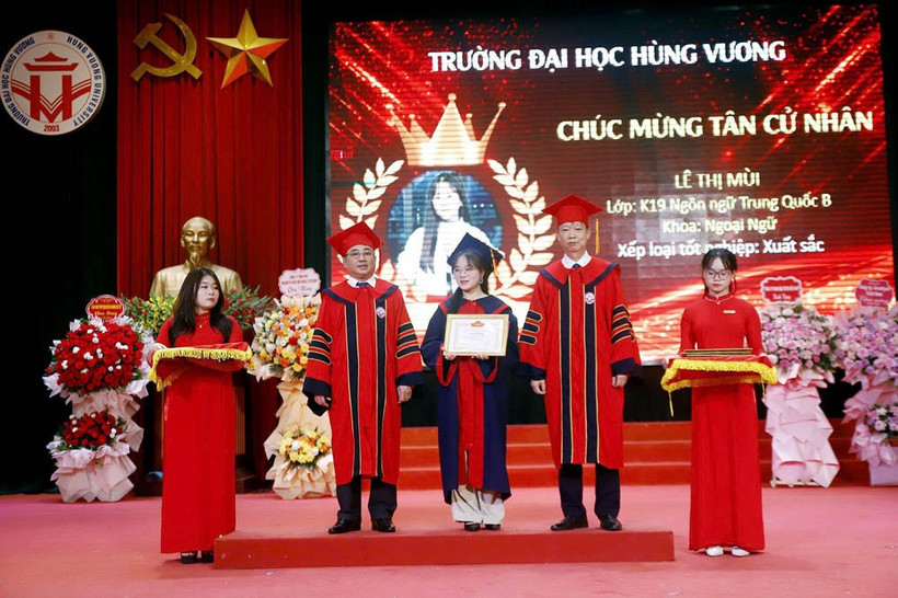 Tại buổi lễ, đại diện lãnh đạo Trường đại học Hùng Vương đã trao bằng tốt nghiệp cho 740 sinh viên K19 đối với hệ đào tạo cử nhân và sinh viên K18 đối với hệ đào tạo kỹ sư, bác sĩ.