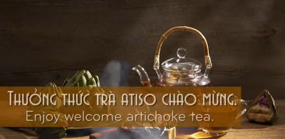 - Thưởng thức trà atiso chào mừng.