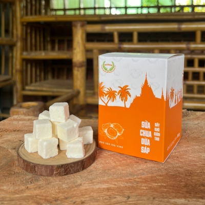 Sữa chua dừa sáp sấy giòn tan Vicosap: Sự kết hợp độc đáo giữa vị chua nhẹ và giòn tan, mang lại cảm giác mới lạ.