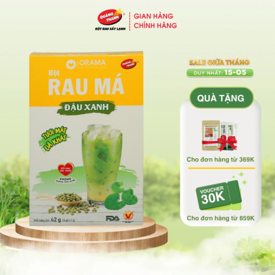 Bột rau má ĐẬU XANH ORAMA là sự kết hợp giữa bột rau má với đậu xanh được hấp chín, mang đến một thức uống giải nhiệt hấp dẫn, cùng hương vị độc đáo thanh mát hòa quyện với vị ngọt bùi của đậu xanh.