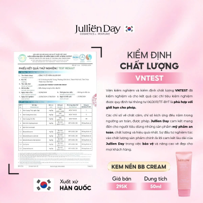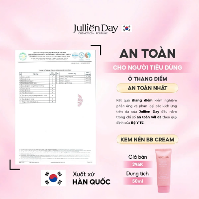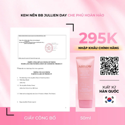 Sản phẩm Kem nền BB che phủ hoàn hảo Jullien day được nhập khẩu chính hãng từ Hàn Quốc, sản phẩm được kiểm nghiệm và được Bộ Y tế cấp phép.