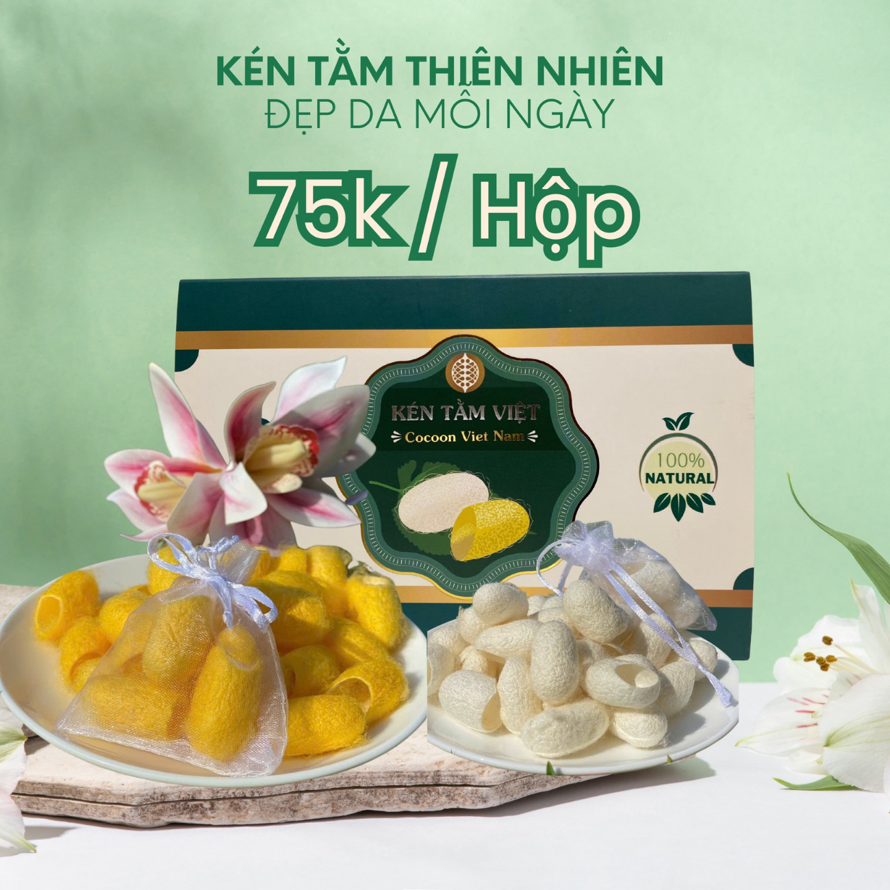Kén tằm được tuyển chọn thủ công từ kén tơ vàng tự nhiên, hấp tiệt trùng và phơi khô dưới nắng tự nhiên để giữ lại nguyên vẹn các hoạt chất quý giá. Mỗi chiếc kén nhỏ đều được làm sạch 100% không hóa chất, đảm bảo an toàn cho mọi loại da, kể cả da nhạy cảm.