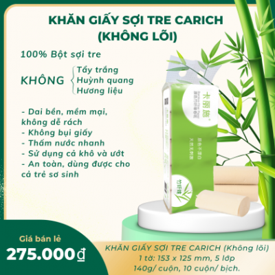 KHĂN GIẤY SỢI TRE CARICH (KHÔNG LÕI)