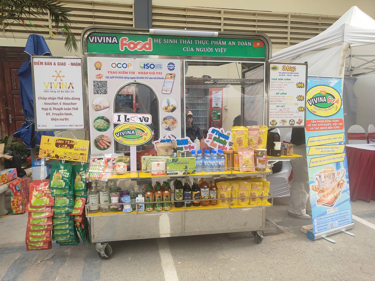 Nổi bật trong số các mô hình được giới thiệu và thu hút sự quan tâm của sinh viên là ''Xe thực phẩm an toàn, đa tiện ích - VIVINA FOOD'' - mô hình phân phối thực phẩm lưu động ứng dụng nền tảng số. Mô hình hướng tới việc cung cấp các sản phẩm thực phẩm có nguồn gốc rõ ràng, được kiểm soát chất lượng và đáp ứng các tiêu chí về an toàn vệ sinh thực phẩm. Thông qua việc ứng dụng công nghệ, người tiêu dùng có thể dễ dàng truy xuất thông tin sản phẩm bằng mã QR, từ đó nâng cao mức độ minh bạch và củng cố niềm tin đối với thực phẩm sạch, an toàn.
