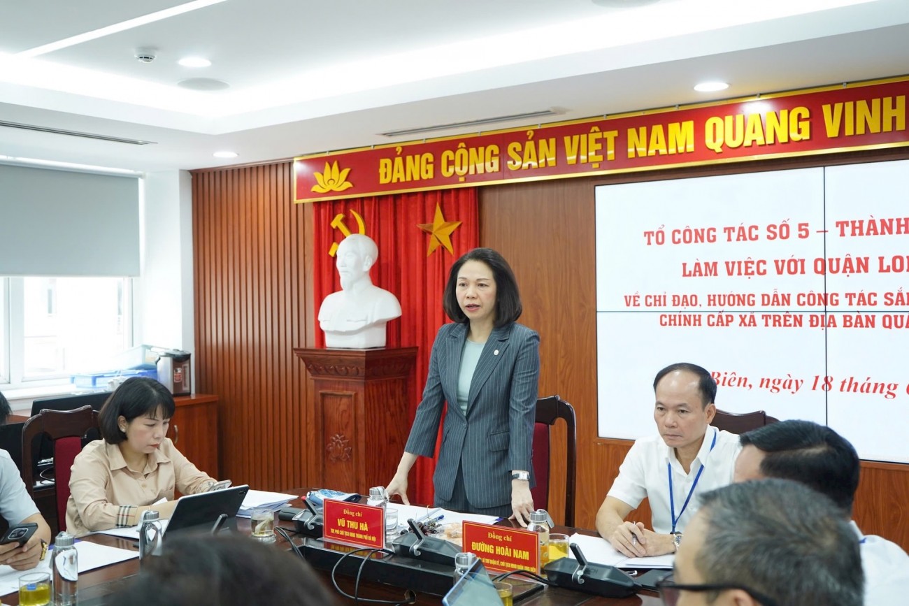 Sáng 18-6, Phó Chủ tịch UBND thành phố Hà Nội Vũ Thu Hà dẫn đầu Tổ công tác số 5 về chỉ đạo, hướng dẫn sắp xếp đơn vị hành chính cấp xã (mới) làm việc với quận Long Biên.